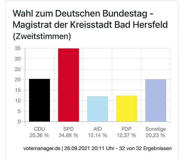 Bei der Bundestagswahl am vergangenen Sonntag wurde die FDP in Bad Hersfeld hinter der SPD und der CDU drittstärkste Kraft. Wir danken den Wählerinnern und Wählern für das Vertrauen!